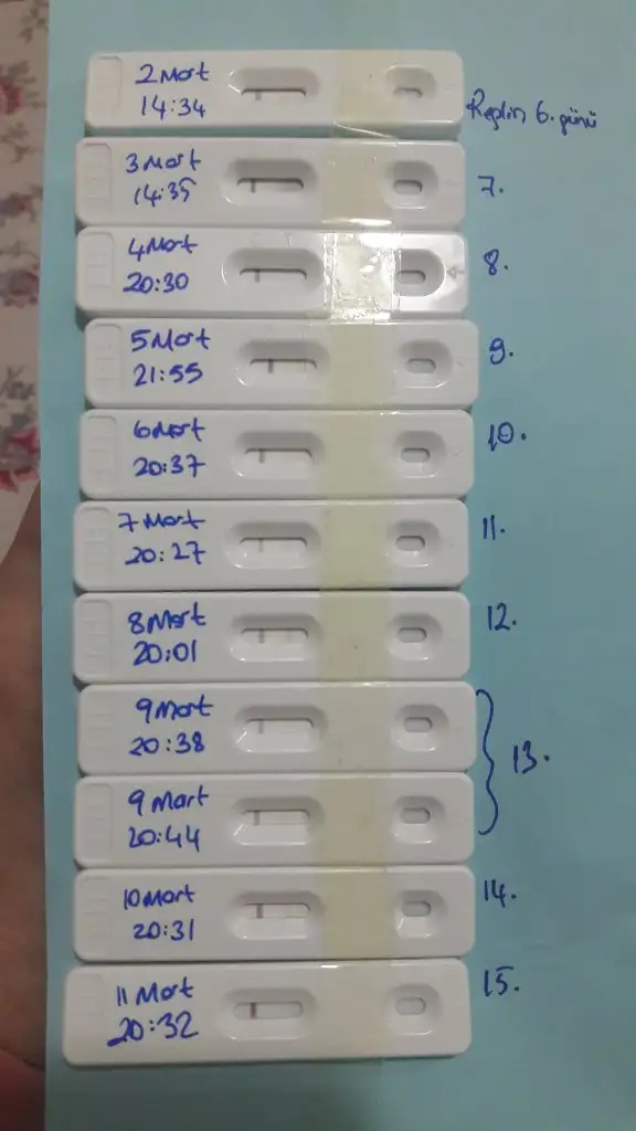 Cevabınız için çok teşekkür ederim bu akşam değerlendirdik çok şükür😂 akşam test aşağıdaki gibi çıktı acaba çatlama evresinde mi ? En üstteki dün, 2. ve 3. bugün sabah ve akşamüstü alttaki de akşam 22.00’de yaptığım