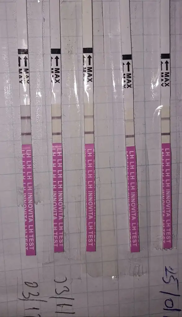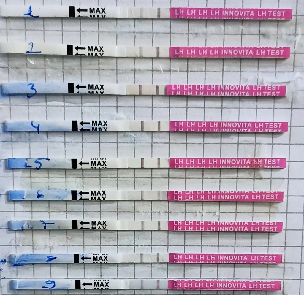 Ben ovulasyon testlerime 5 Ocak itibari ile başladım ancak 5 ocakta hiç bir çizgi çıkmadı tertemizdi onun fotoğrafını çekmedim o yüzden. Ancak 6 ocaktan itibaren çizgi belirdi. Bugün 5. son testi yaptım çizgi artık yok olmuş gibiydi. Görsel 6,7,8 ve 9 ocak tarihlerine ait sırayla.
