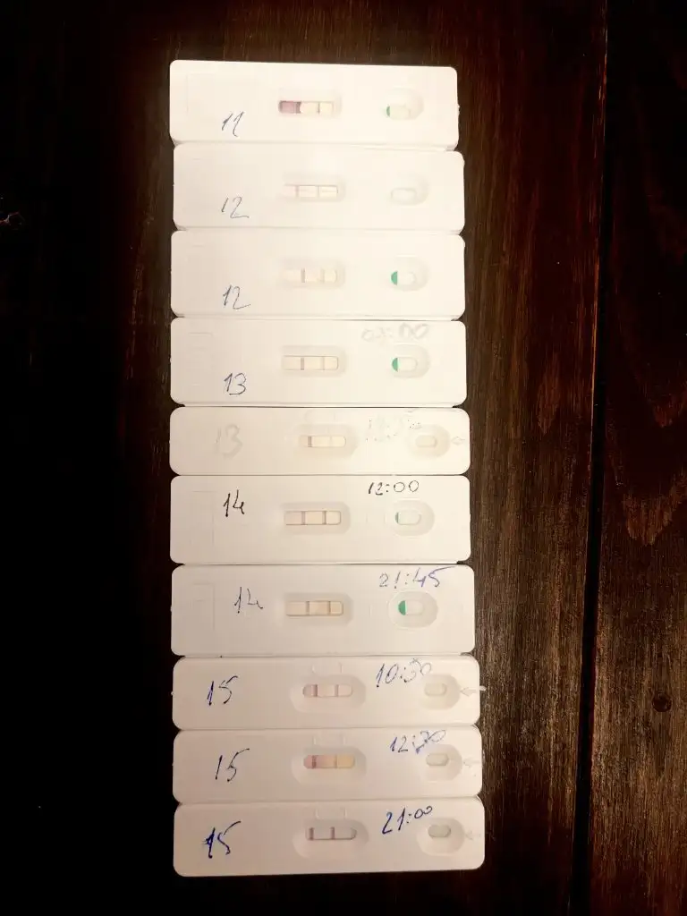 Merhaba ilk defa ovulasyon testi kullanıyorum ve çok kafam karıştı. Ayın 11. İnde yaptığım testi pozitif yorumlamıştım ve değerlendirdik, sonrasında silikleşti de ama 14 ünde sanki tekrar pozitif oldu, fotoğrafta tam görünmüyor ama T C den daha da koyuydu, tekrar değerlendirdik, 15 inde silikleşir diye düşündüm ama halen olmadı hatta akşam testinde ikisi de aynı koyulukta bu arada düzenli adet olmuyorum. Hatta meme kanseri sonrası kemoterapi gördüm üç yıl önce. Sonrası hormon tedavisi ile menepoza soktular. Evlendim çocuk istiyoruz diye tedaviye ara verdik, dondurulmuş yumurtalarım ile hamile kalamadım 3 tüp bebek tedavisi negatif oldu. Ama bir şekilde ilaçsız iki Aydır yumurtam oluyor ve reglm başladı. Önceden çok düzenli adet olurdum ama artık herşey bir birine girdi, ben de ovulasyon ile anlamaya çakışıyorum.
