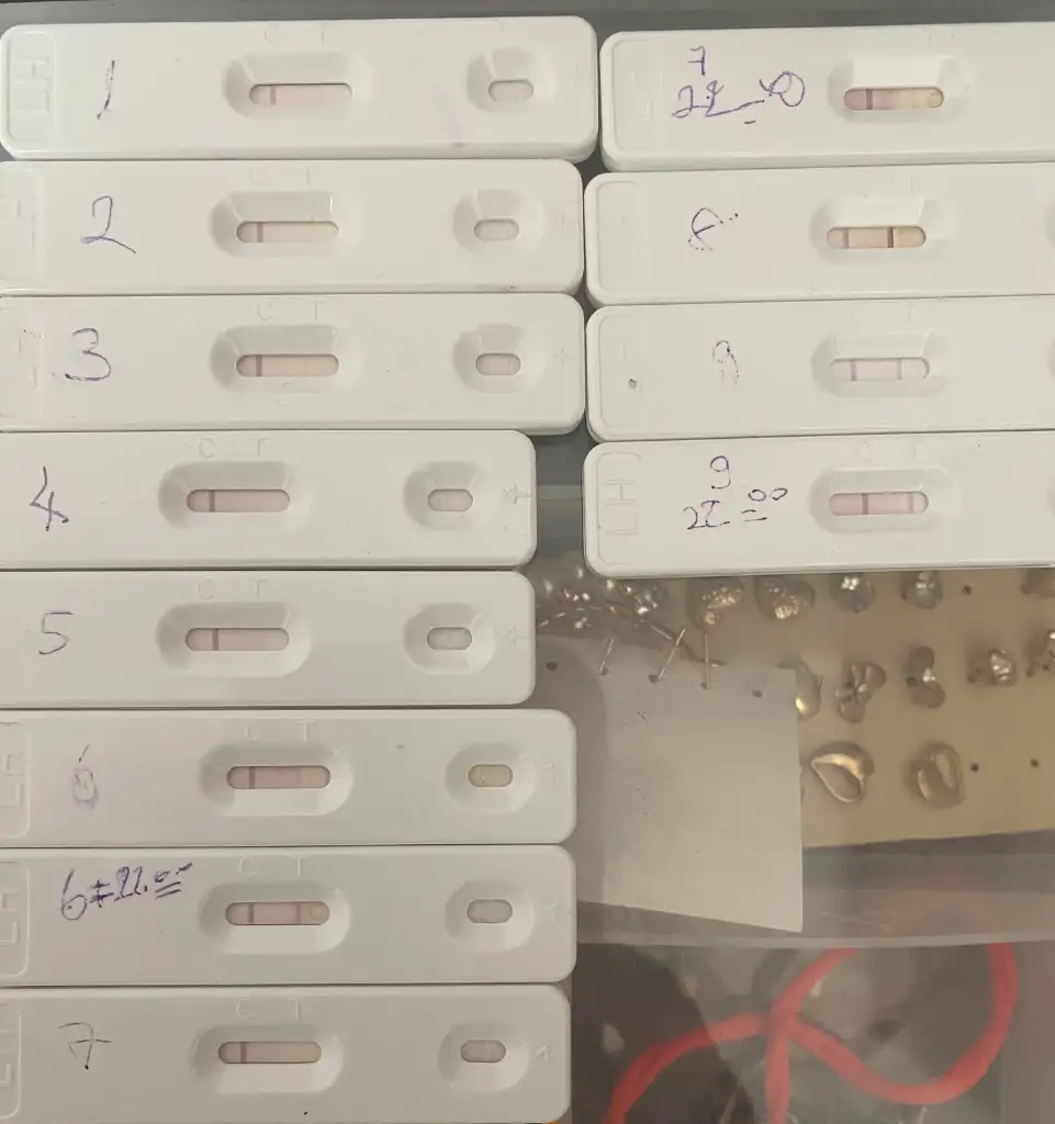 testi yapmadan bir saat önce falan su içmiştim acaba seyreldi de mi öyle çıktı ki su an yaptın tekrar koyulaşmış çünkü23ü baya koyu acaba 24nde catladi mi ki belki tam olgunlaşmadan catladi