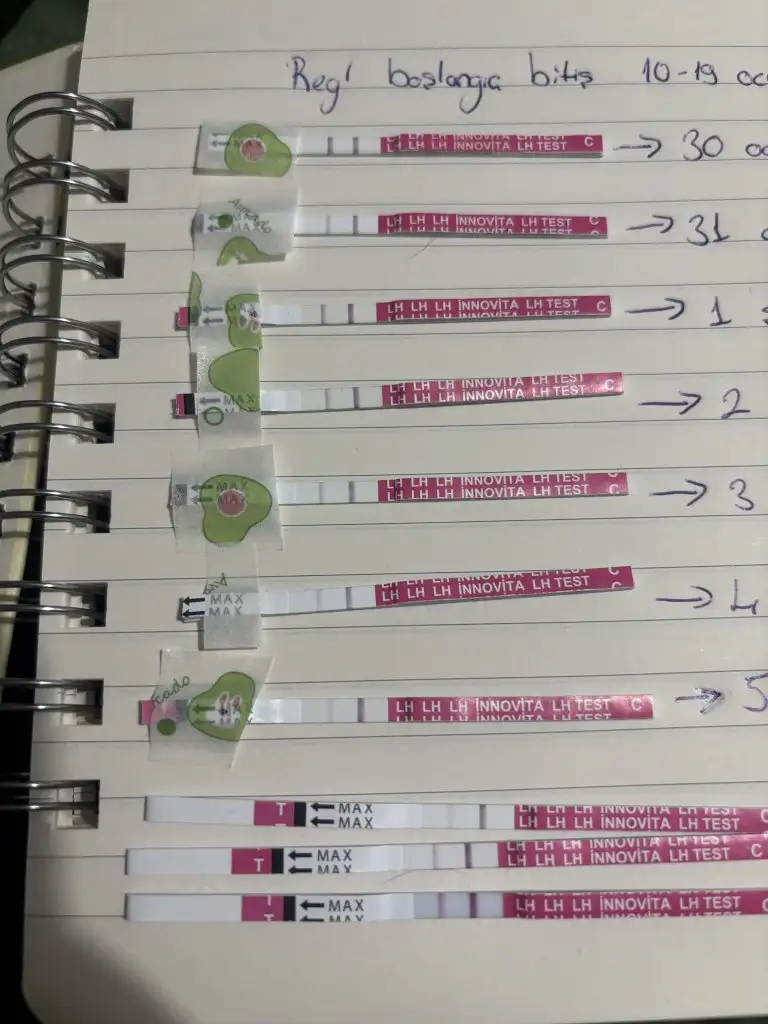 Merhaba kızlar düzenli olmasa da ovulasyon testi yapıyorum yumurtlama günü en üstteki test 30 Ocak 7 şubatta kan verdim negatif çıktı bende ovulasyon testine devam edip reglimi bekliyordum bugün yaptığım ovulasyon testlerinde (alttaki ikisini bugün yaptım emin olmak için) yine koyu çıktı kan testi için erken davrandım sanırım ama bir gün sonra bu kadar koyu çıkmasına anlam veremiyorum gebelik olabilir mi ?