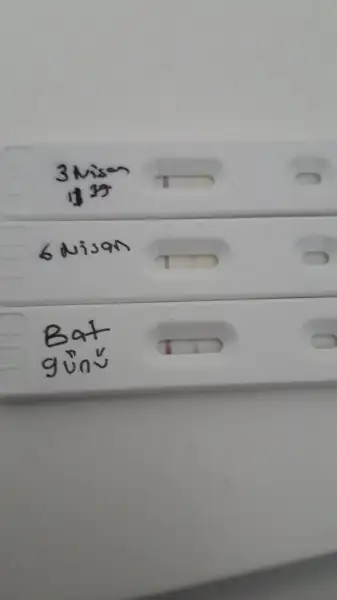 Kızlar Benim 5 gun var bata. Dün yaptigim ovulasyon testi neredeyse gorunmeyecek kadar silikti. Azonce yaptığım da boyle çıktı. Ikisinde de su alimina dikkat etmedim son anda kafama esti yaptim çünkü.