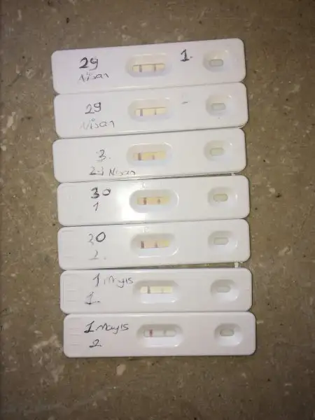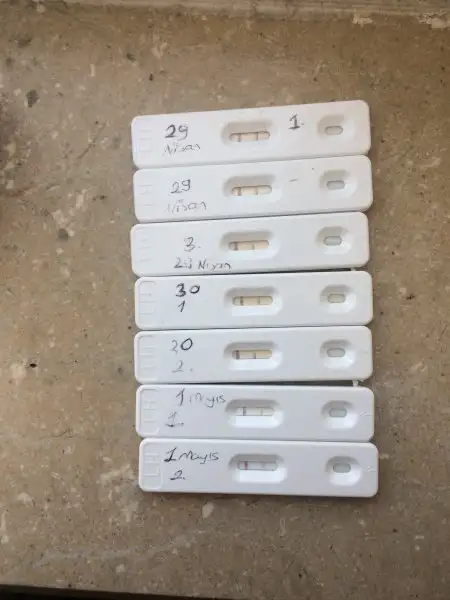 Canım sıvı alımına dikkat etseydin belki daha net çıkardı testlerin bugün dikkat ederek yap bakalım.idrarini da tut.bakalım silikleşmeye var mı.29.nisanda testin daha belirgin ama pozitif olduğu zaman daha koyu cikiyor t çizgisi.sonraki günler çizgilerin yarım olmuş.bugün dikkat ederek yaparsan ozaman daha net anlaşılır.Kızlar bana yorumlar mısınız bat 23 nisandı bugün 8. Gün