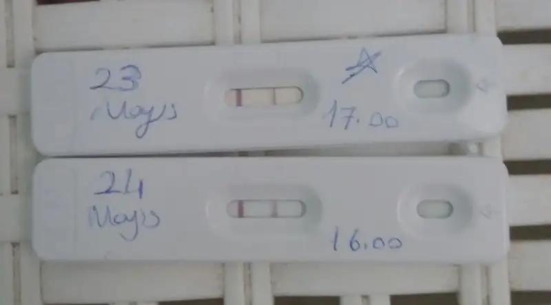 Merhaba arkadaşlar bu ay çok ilginç bir durum yaşiyorum. Adetimin 8.günunden beri ovülasyon testleri yapiyorum ve 23.gün olmasina rağmen koyu çizgiyi göremedim ama ikinci çizgi koyuya yakin çikiyo genelde. Normalde 19.gün yumurtluyorum ve sonrasinda silikleşiyordu test. Acaba bunun nedeni nedir? Kist mi oluştu acaba korkuyorum... Benzer durum yaşayan varsa lütfen yardimci olsun. Koyu gibi görünen testler 2 saat sonra oldu.