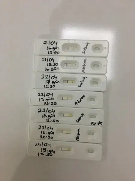 Bugün son testlerimin fotografini paylasmistim. Testlere göre 22-23 nisan gibi yumurtam çatlamış görünüyordu. Ama dün aksam ve bu akşam yaptigim testlerde yine ikinci cizgi az da olsa gorunuyor. Tekli test fotografi bu aksama ait. Bu ne anlama geliyor?