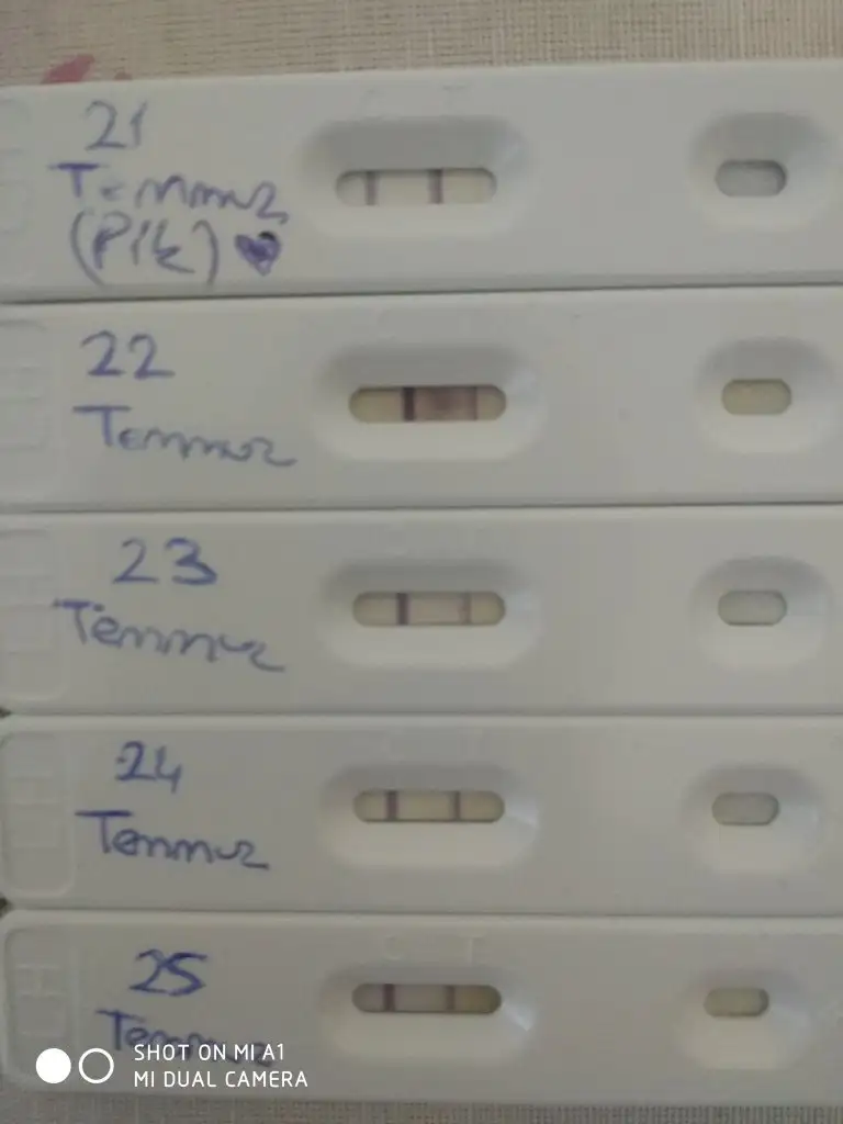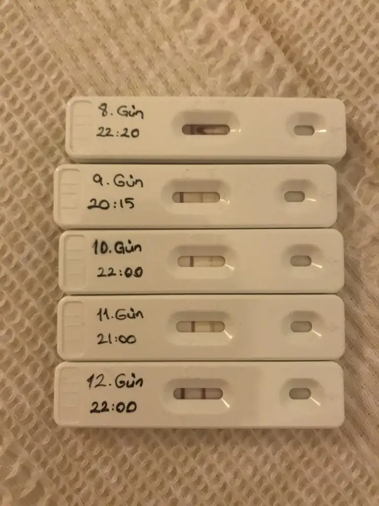 Merhabalar herkese. Yeni konu açmak yerine buraya sormak daha iyi olur diye düşündüm. Bu ay ilk defa ovulasyon testi ile yumurtlama takibi yaptım. 21 Temmuz'da piki gördüm. Pik olduğuna eminim çünkü saniyesinde t cizgisi c den önce belirdi ve kopkoyu idi c den. Sonrasında ben aynı saatlerde yapmaya devam ettim 4 gündür ikinci çizgi de hatırı sayılır derecede koyu çıkıyor. Adet düzensizliğim yok. Neden olabilir bir fikri olan varsa yardımcı olur musunuz? Şimdiden teşekkürler 15956971358241144363044254807911.webp