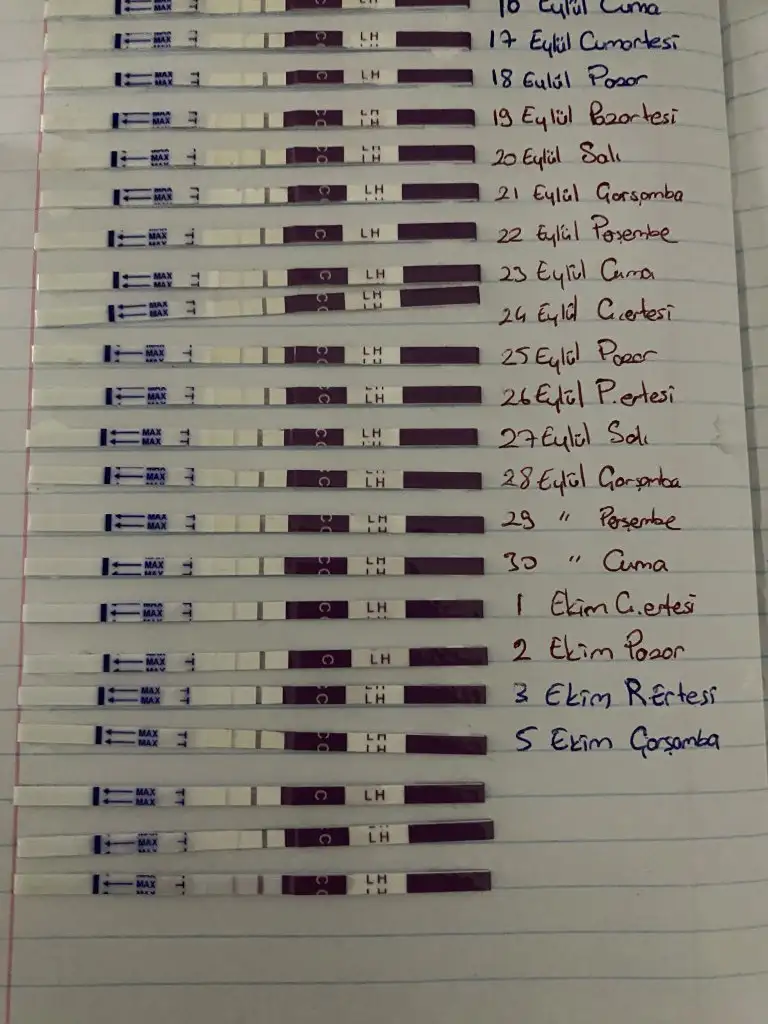 Kızlar 10 eylülden 5 ekime kadar test yaptım yumurtlama olmayınca bırakmıştım dünden beri şeffaf akıntım vardı 12-13-14 ekimde tekrar yapmaya başladım en alttakı bugun sizce yumurtlama yakın mı