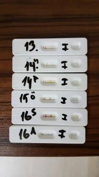 Paylastigim resimde 16. Gunumde sabah yaptim. Cok koyuydu. Aksam da yaptim. Baktim catlamis. Hah dedim simdi zamanidir. Yani cizgiler silikken testleri telef etmeye gerek yok. Gitgide koyulasinca farkettim ben bugun yarin yumurtanin catlayacagini. Bir de ben agrisiyla hissederim zaten. O gun cok da agrim var. Aksam o yuzden tekrarladim testi.Günde iki kere yapmadın yani Çünkü resimde sabah akşam yapmışsın ya ondan sordum canım