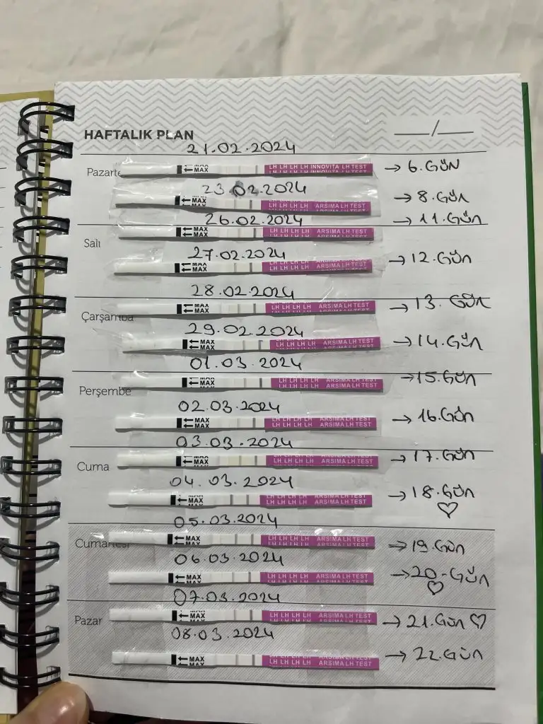 Merhaba arkadaşlar benim yumurtlamam 18 i oldu yumurtlama ve çatlama ilişkim oldu fakat 25. Gün ovulasyon testim koyulaştı yine bugün 26. Gün yine koyu adetim 32. Gün olacak sizce sebebi nedir. Buna benzer şeyler yaşayan oldumu? Bugün erken biliyorum ama hcg testi yaptım negatif çıktı tabi daha 6 gün var çünkü . Ama görselede ekledim 2 çizgide kopkoyu. Yinemi yumurtlama oldu acaba