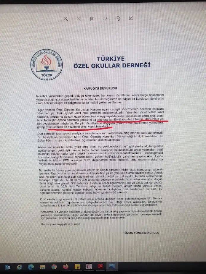 Okulun bahanesi gelen zamlar ve gelir gider dengesinin şaşması ama şu var ki bu zamlar herkesin bütçesini etkiliyor. Bizim maaşlarımıza da aynı oranda zam yapılmıyor ki ektra olarak sözleşme dışı ödeme yapalım. Ki şuan mevcut ödemeleri baz alarak önümüzdeki sene için farklı bir okula kayıt yaptırdık ve onun ödemelerini de başlattık yani 2 okulun taksidini aynı anda ödüyoruz. Bunu da kendilerine ayrıca belirttim.
