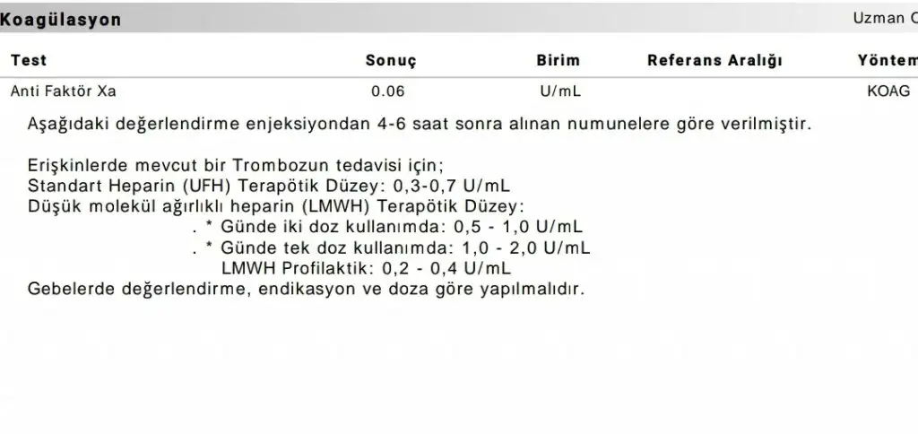 Merhaba ,MerhabaMetalwoman . Doz testini yaptırabildin mi? Konuştuğumuz zaman iyi bir hematologla görüşmüştüm, günde bir iğne ve coraspin yeter demişti. O günden beri öyle devam ediyorum ama bu cumartesi karşıya geçicem geçmişken doz testi yaptırıcam. Senin sonucun nasıl çıktı dozun değişti mi merak ettim. Testin normal değeri kaç olmalıymış bilgin var mı ?