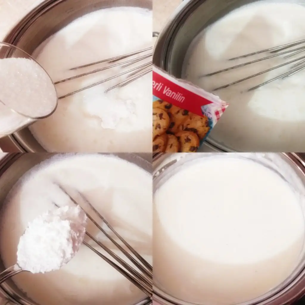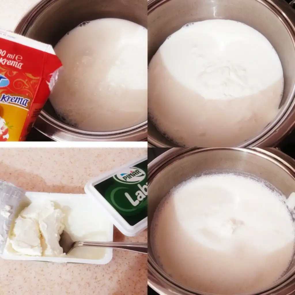 Süt ile kremayı bir tencereye alıp çırpma teliyle 1 dakika kadar çırpın. Ardından 1.5 kaşık labneyide ekleyip çırpın. Şeker, nişasta ve vanilini ekleyip 1 dakika daha çırpın.Ocağa alıp sürekli karıştırarak pişirmeye başlayın.Kaynamaya başladığında altını kısıp 2 dakika daha pişirin.