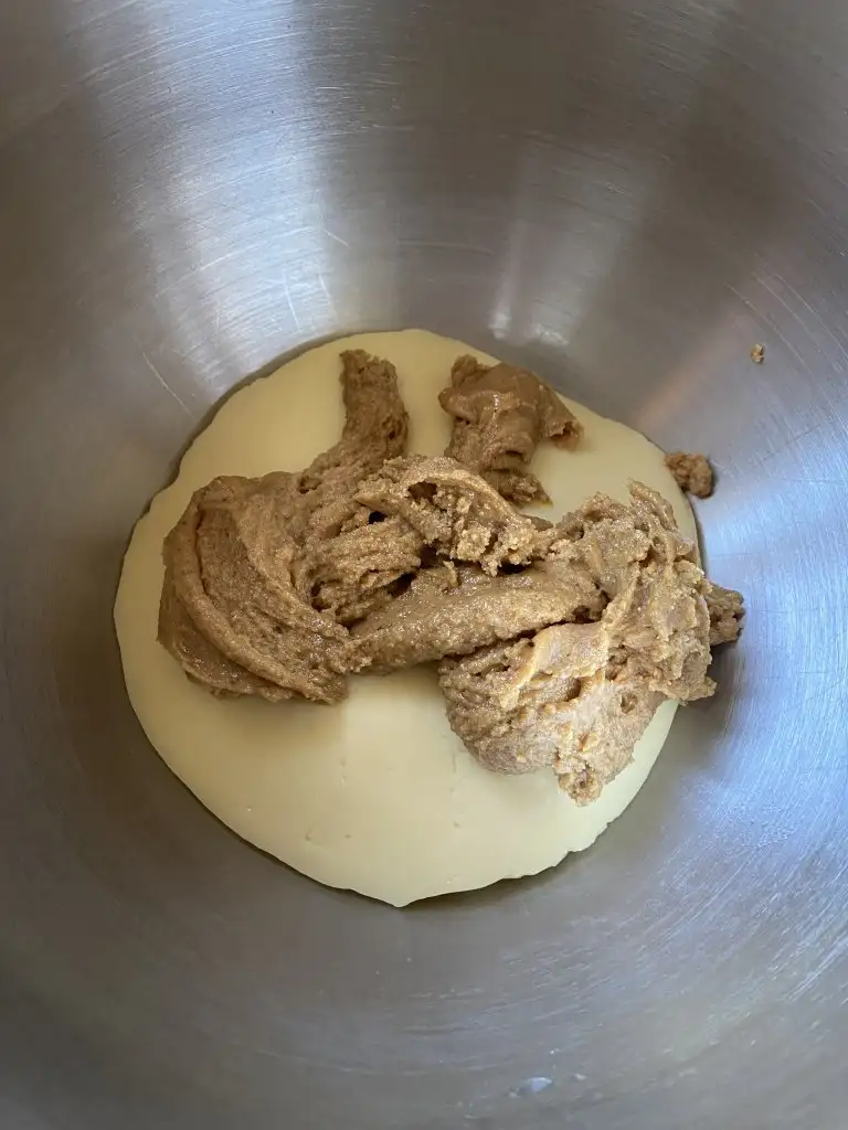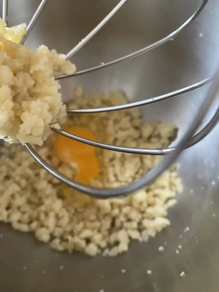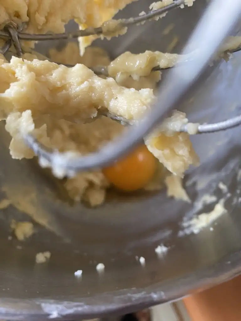 Soğuyan hamuru bir çırpma kabına alıp, ilk yumurtayı ekliyoruz ve çırpmaya başlıyoruz. Yumurta iyice hamurla özleşince 2. yumurtayı ekleyip, aynı işlemi yapıyoruz. 3. yumurtaya da aynı işlemi yapıp, hamur özleşince sıkma torbasına alıyoruz.
