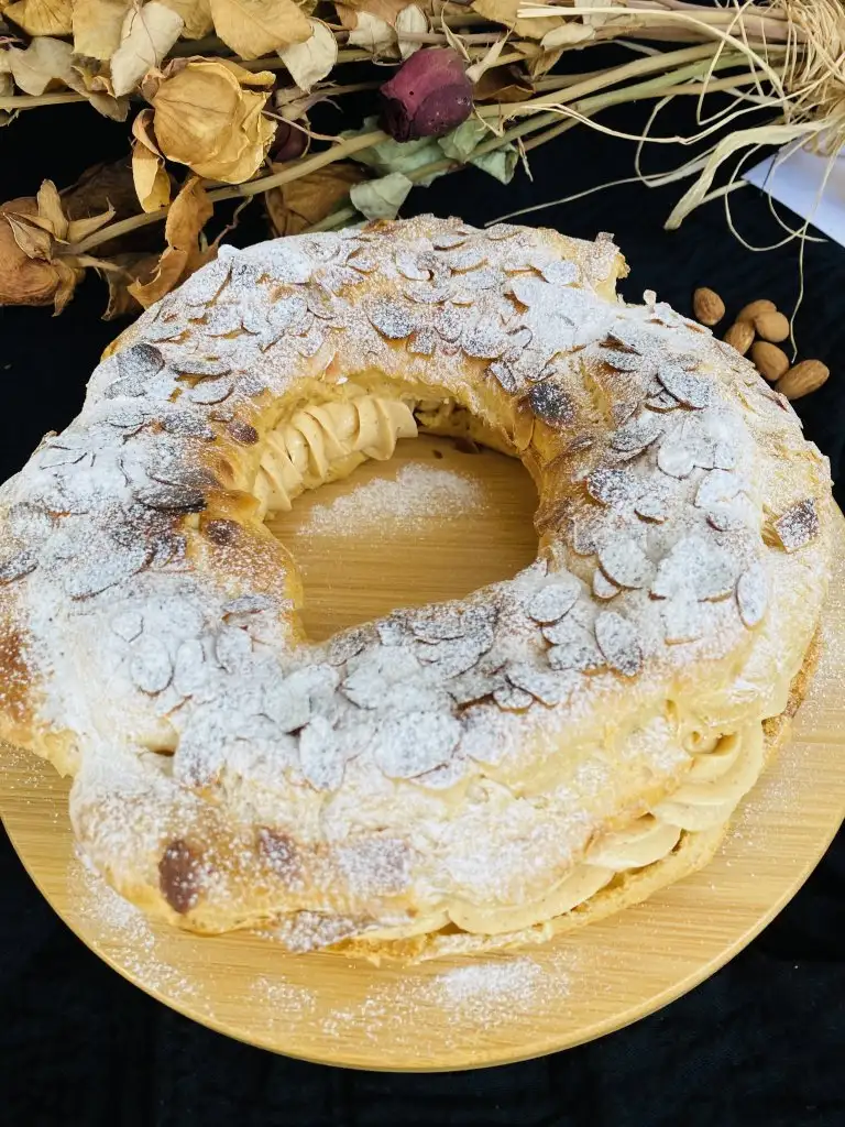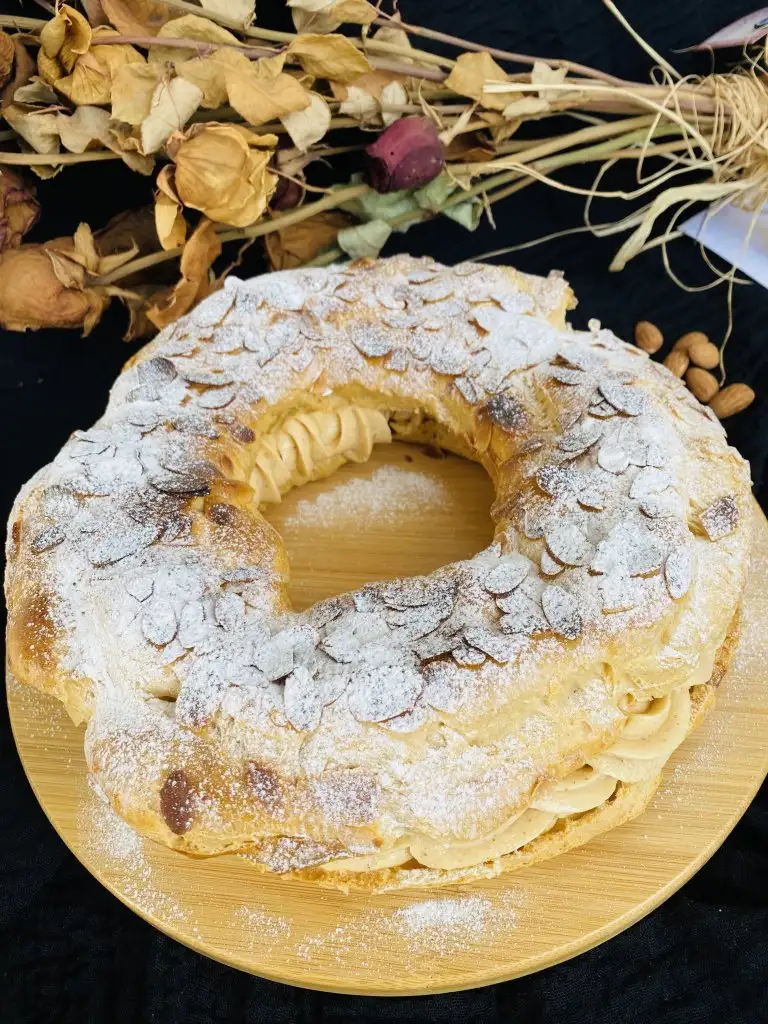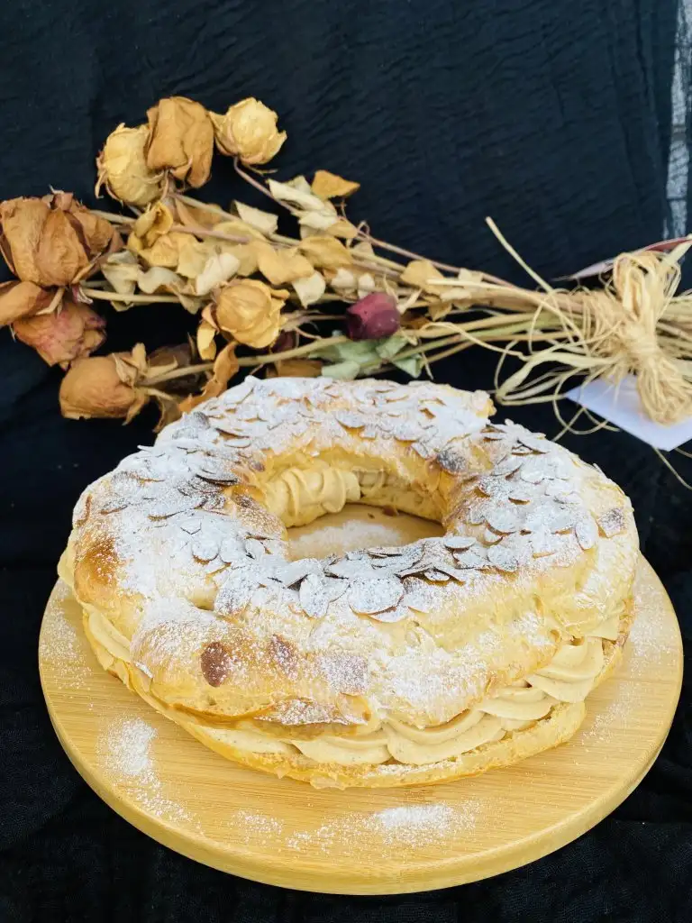 Pişen hamurumuzu ortadan ikiye bölüp, arasına kremamızı sıkıp, üzerine diğer katımızı koyuyoruz ve pudra şekeri serperek pastamızı tamamlıyoruz.