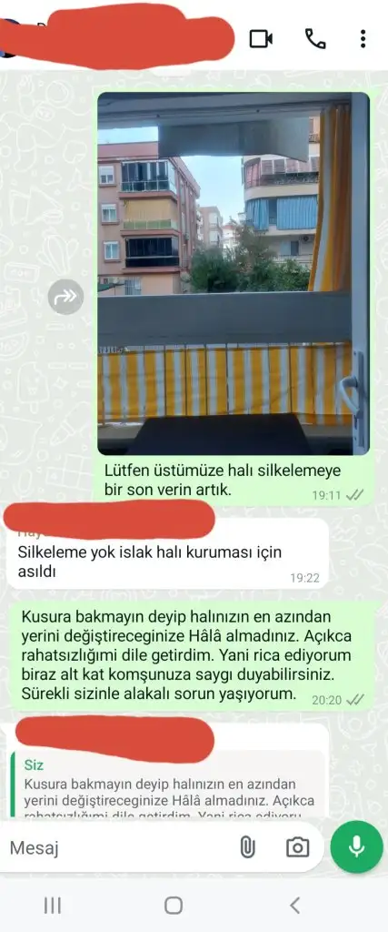 Ya bende intikam olarak gece kız uyanınca gece2de yukarı tak tak yapıyım onlara ses olsun diye düşünmüştümArkadaşım şırnakta çalışırken kapısının önünde bok bulmuş. Bi de karikatürlerdeki gibi yuvarlaya yuvarlaya bırakmış.kim olduğu da belli, gündüzden sen göreceeğn hocaaağ demiş çocuk.
