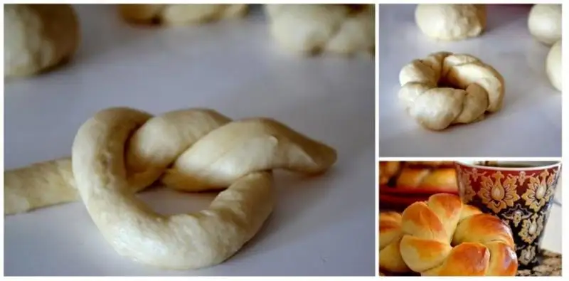 İyice mayalanan hamurdan yumurta büyüklüğünde parçalar kopartın ve şeritler yapın.
