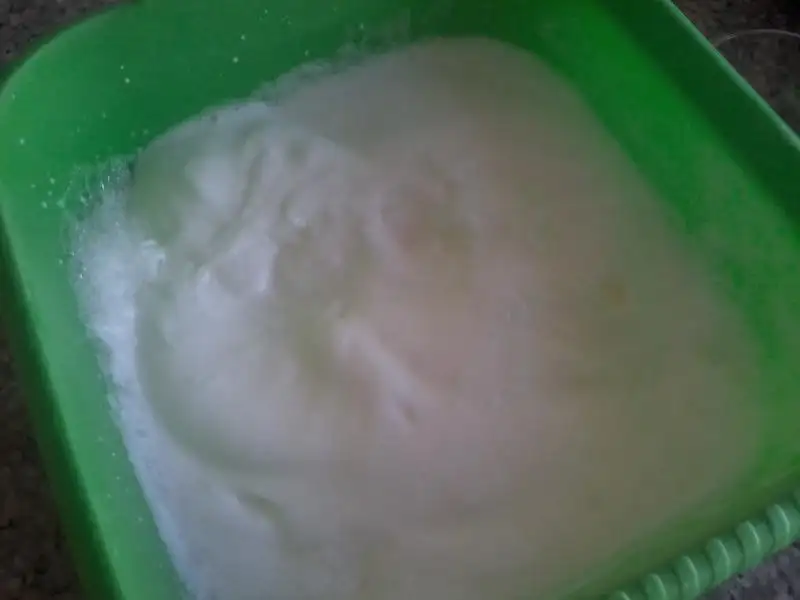 Sonra pandispanyamızı hazır hale getirmek için 1 su bardağı süt ile ıslattım.