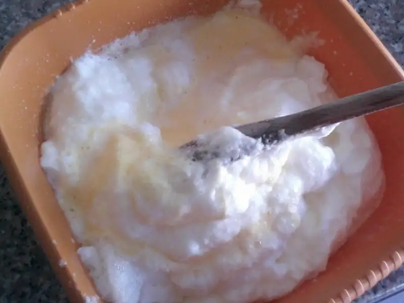 Yumurta aklarını bir fiske tuz ile kar haline gelinceye kadar çırpalım.