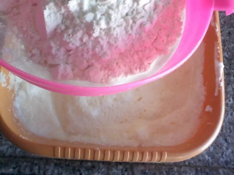 Unumuzu ve kabartma tozumuzu eleyerek bu karışıma ilave edip homojen bir kıvama getirelim.