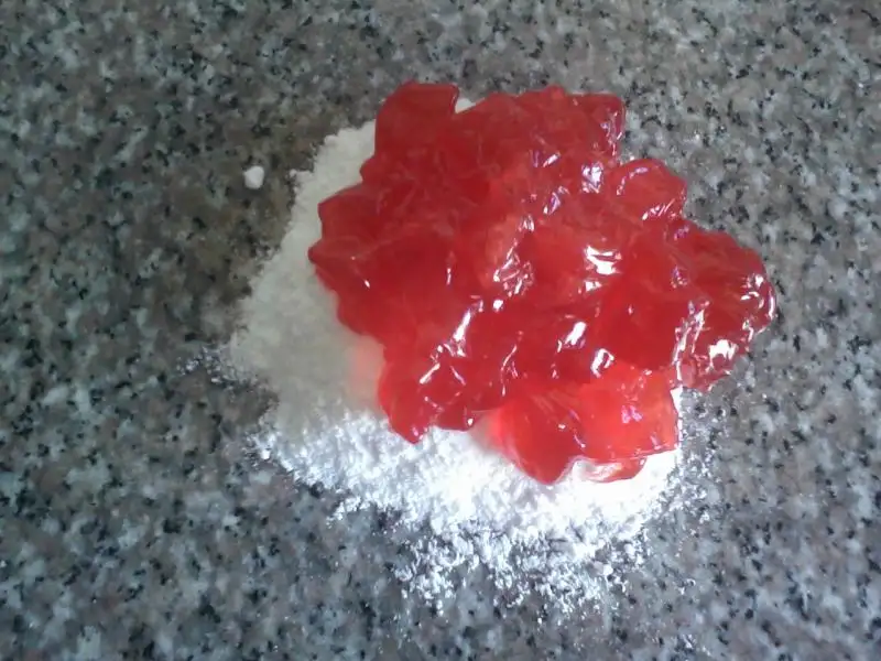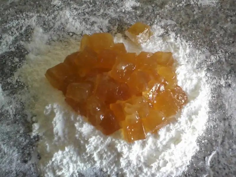 Fakat güllü lokumlar sade lokumlardan çok daha elastik olduğu için,üzerine çok az su serpip direk pudra şekeri ve nişasta ile yoğurabilirsiniz.