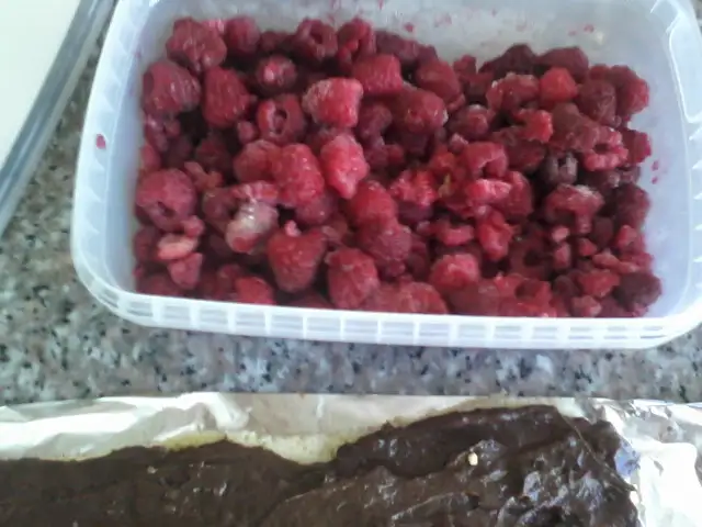 Ardından hazırladığım pasta kremasını alt tabana sürdüm ve üzerine frambuazları yerleştirdim.