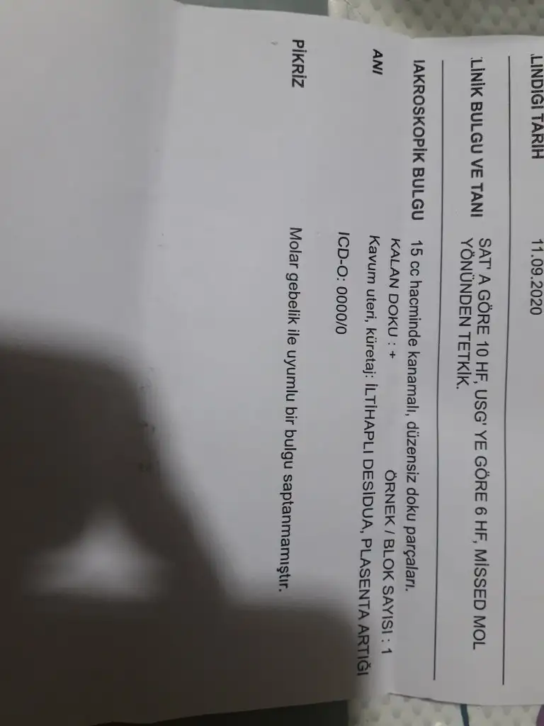 Gecmis olsun canim. Patoloji kurtajin sebebini soylemez. Patolojiye giden maddenin tanimini yapar bunu youtubeda patoloji uzmaninin videosunda dinlemistim. zaten yaziyo ordada plesanta artigi diye. Benimde iki defa gitti patolojiye doktorum bakmadi bile klasik ayni seyi yazip yolluyolar dedi sanki bilmiyoruz oraya yolladigimiz parcanin ne oldugunu diye soylenmisti.