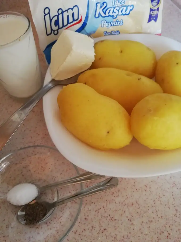 -Haşlanmış patatesleri rendeleyin veya ezerek tencereye alıp, sütü ve yağı ilave edip sürekli karıştırıyoruz. Püre haline gelen patatese kaşar peyniri, tuz ve karabiber ekleyip yaklaşık 3 dakika pişirip altını kapatıyoruz.