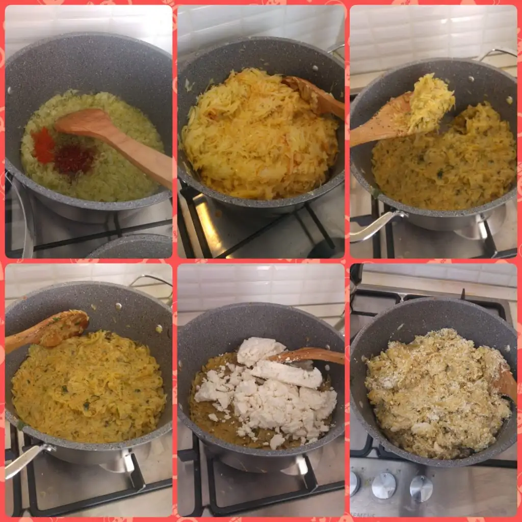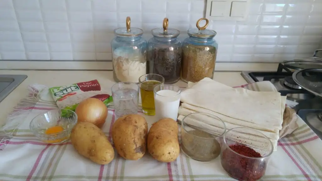 Yemeklik doğradığımız soğan sıvı yağda kavrulur. Rendelediğimiz patatesler ilave edilir ve yumuşayana kadar sotelenir. Tuz, baharat ve maydanoz eklenir. Ilıyınca Teksüt lor peyniri eklenip güzelce karıştırılır.