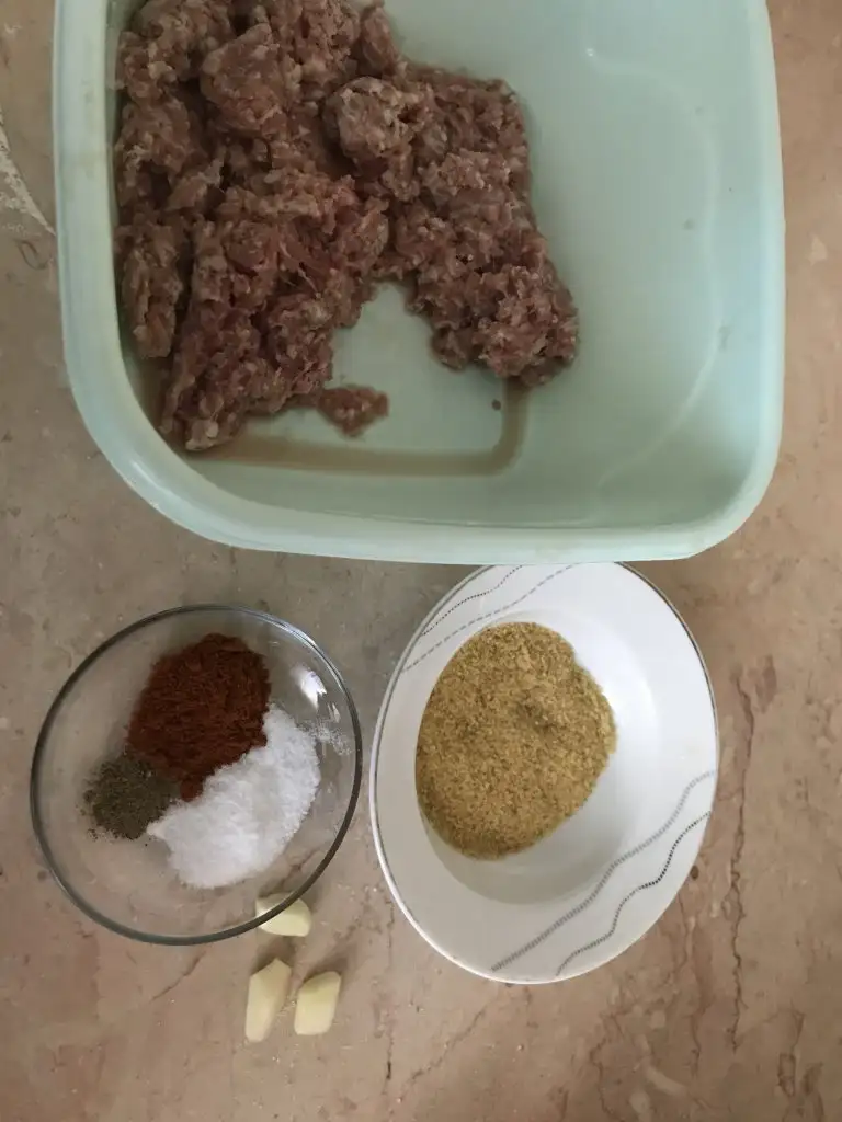 İlk olarak yemeğimizin köftelerini hazırlayalım. Kıymanın üzerine bulgur, sarımsak, baharatlar ve biraz da tuz ekleyerek iyice yoğuralım. Vaktiniz varsa üzerini streçleyerek 15 dakika kadar buzdolabında bekletebilirsiniz.
