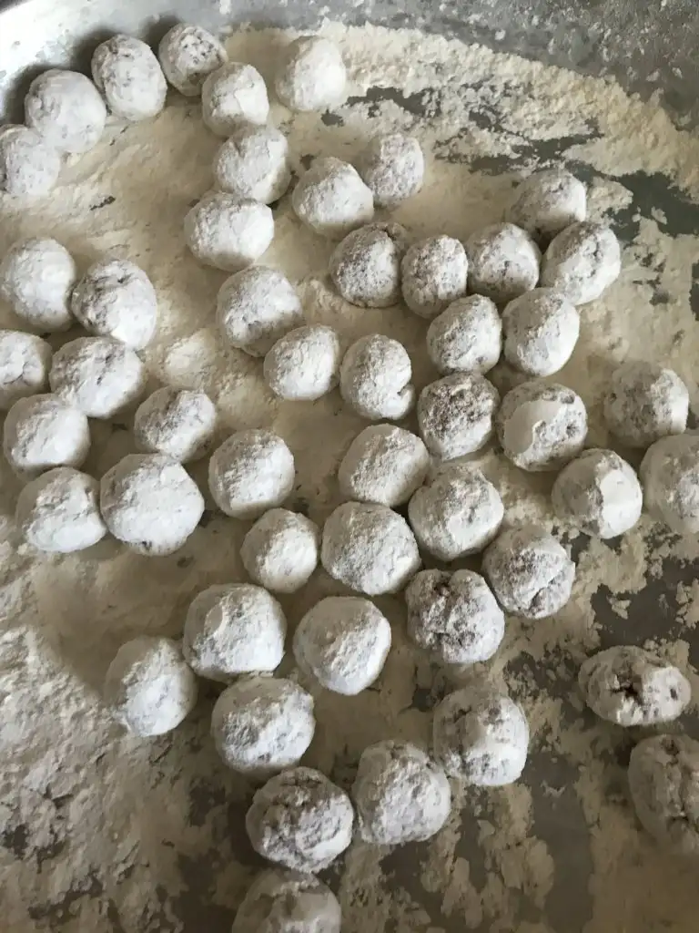 Ufak ufak yuvarladığımız köfteleri içerisine un serptiğimiz kaba alarak una bulanmalarını sağlayalım.