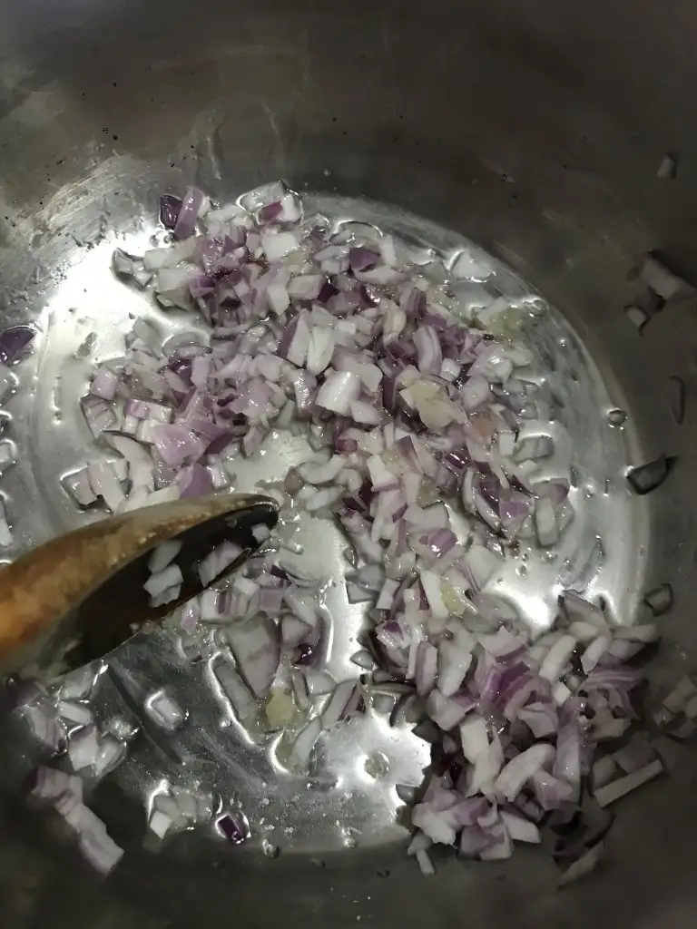 Soğanları doğrayalım ve sıvı yağda soğanlar pembeleşinceye kadar kavuralım.