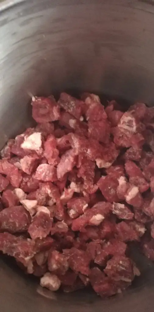 - Tenceremizi ocağa alarak ısıtalım. Daha sonra kuşbaşı etleri ilave edelim ve tencerenin kapağını kapatalım. Etler suyunu salıp tekrar çekene kadar arada karıştırarak pişirelim(.Ben düdüklü tencerede pişirdim etlerimi)