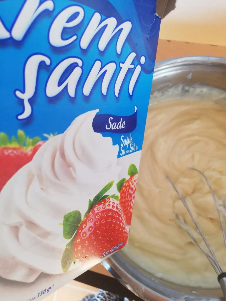 - 1 paket krema (1 paket toz krem şanti de kullanabilirsiniz. Ben krem şanti kullandım)