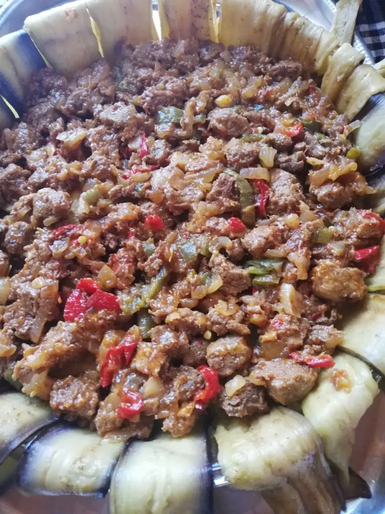 Patlıcan ve et ikilisi ile yapılan bir çok yemek tarifi var. Bunlardan birini yapacağım. Özellikle davet sofralarında şık sunumuyla göze de hitap eden patlıcan kapama tarifi veriyorum. Ben borcamda yaptım. İsteseniz güveç kapılarında veya kelepçeli kalıpta da yapabilirsiniz.