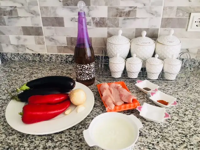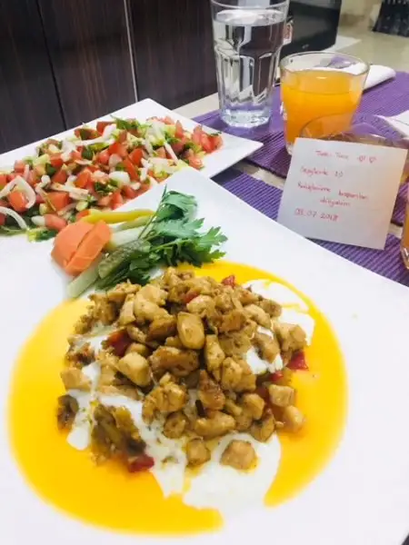 sonra hemen servis aşamasına geçiyoruz. Öncelikle servis tabağının altına patlıcan ve biberden oluşan harcı koyup üzerine istediğimiz miktarda sarımsaklı yoğurt gezdiriyoruz. Onun üzerine ise tavuklarımızı yerleştiriyoruz. Hem yapımını hem lezzetini sevdiğim bir yemek olmuş oldu