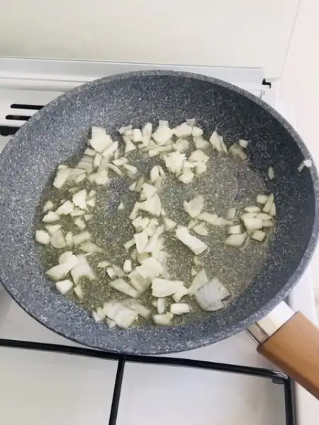 Onlar közlenirken başka bir tavaya bir miktar zeytinyağı döküp soğanları kavuruyoruz.