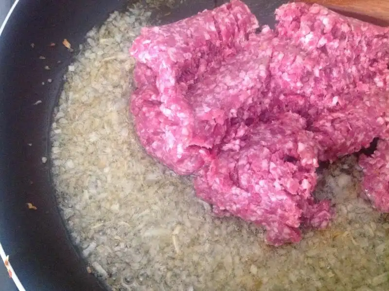Soğanı yağı tavaya alıp soğan yarı kıvamda kavrulduktan sonra kıymayı tuzunu ilave edip soğanla iyice kavuruyoruz
