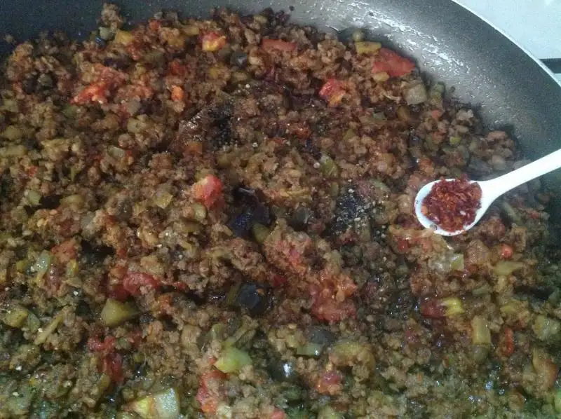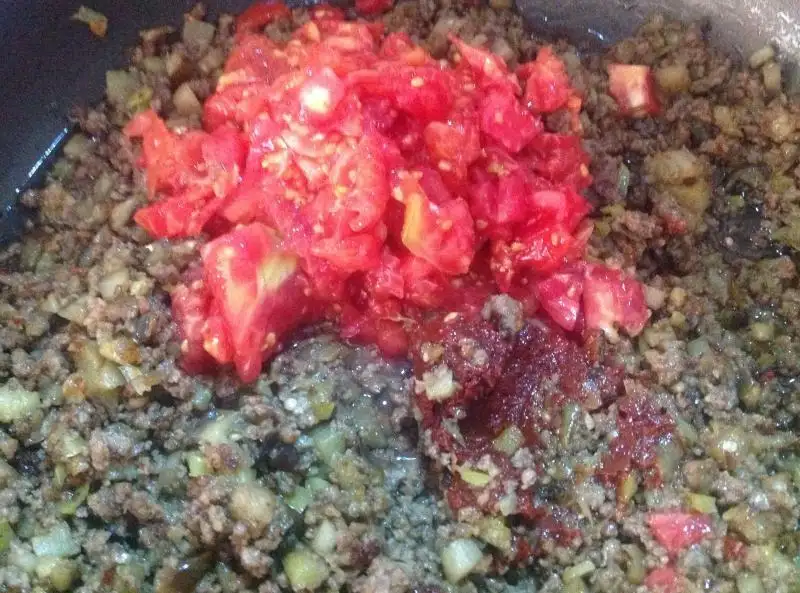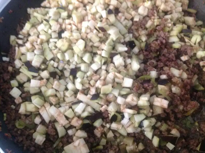 Sonra biberini kıymayla kavuruyoruz biberler kavrulduktan sonra patlıcanları ilave edilip patlıcanlar yumuşayınçaya kadar iyice kavuruyoruz
