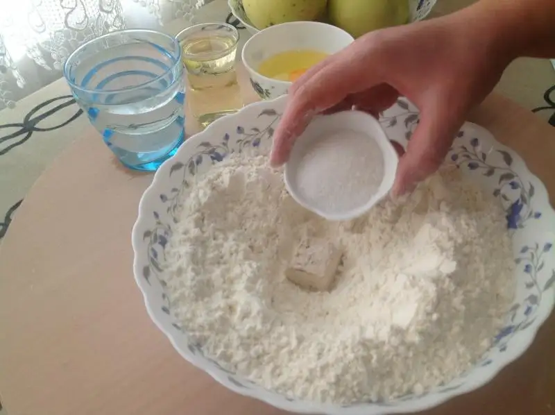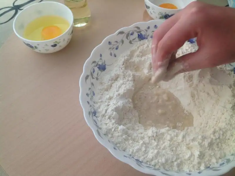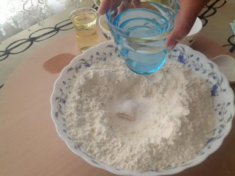 Bir miktar una tuzu karıştırıp ortasını havuz şeklinde açıyoruz mayayı ve şekeri ilave edip biraz ılık suyla mayayı elimizle eritiyoruz