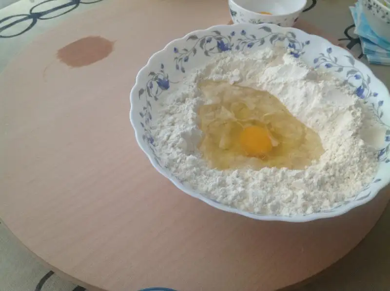 Daha sonra 1 yumurtanın sarısını ayırtıktan sonra sıvı yağı yumurtayı ilave edip kulakmemesi yumuşaklığında bir hamur elde ediyoruz