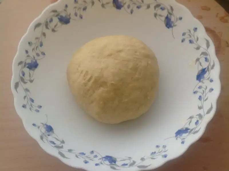 Yoğurulan hamurun üzerini streç filimle kapatıp yarım saat dinlendiriyoruz