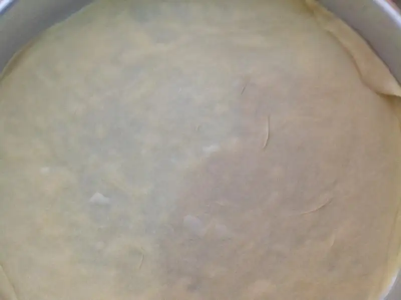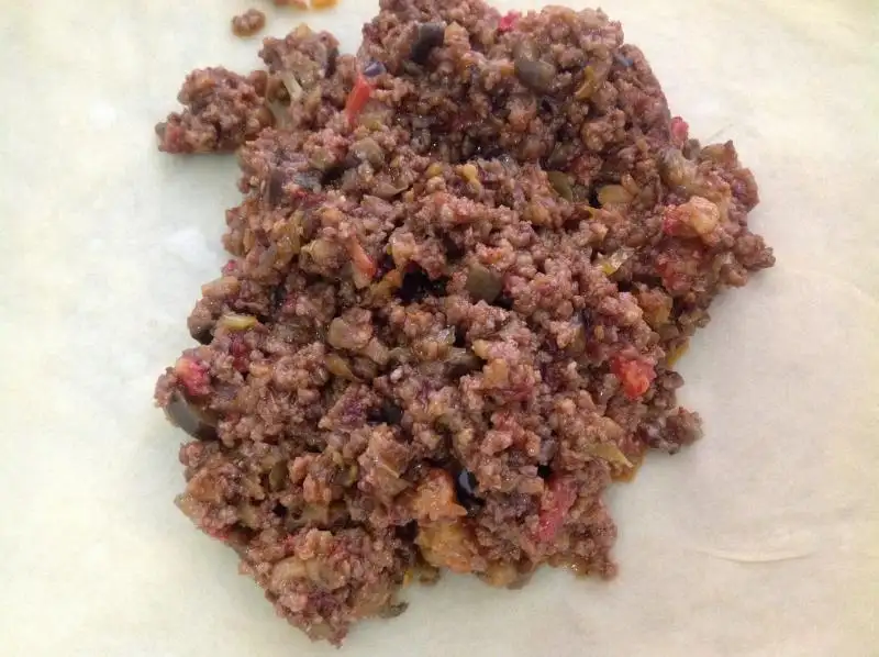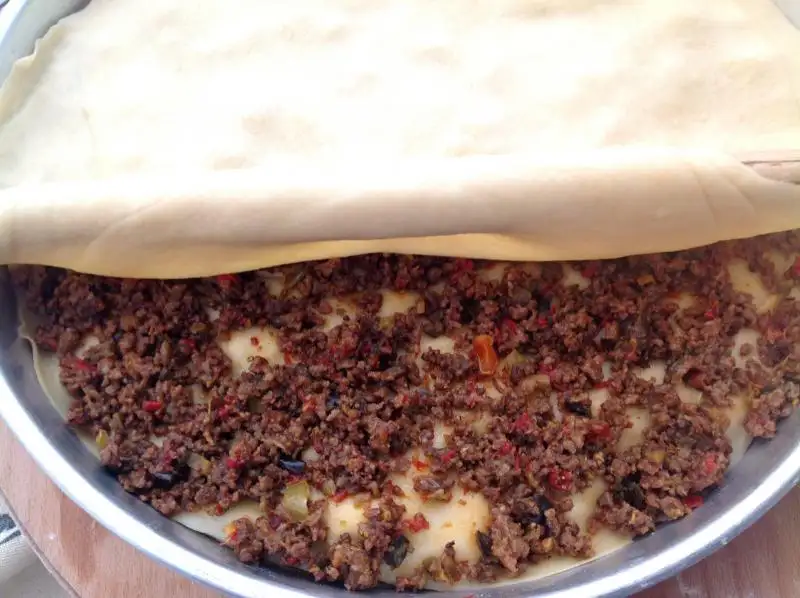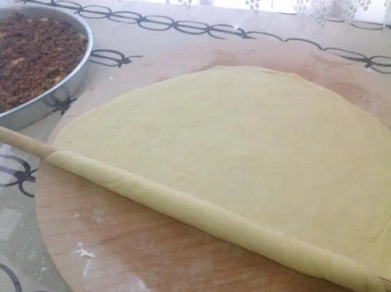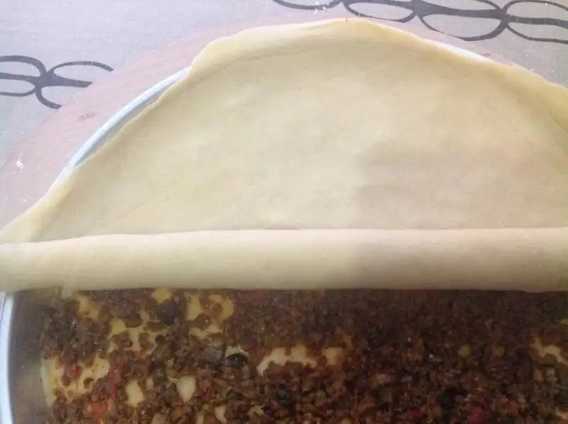 Yufkanın üzerine iç malzemenin yarısını koyup eşit şekilde serelim