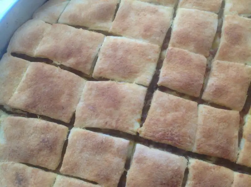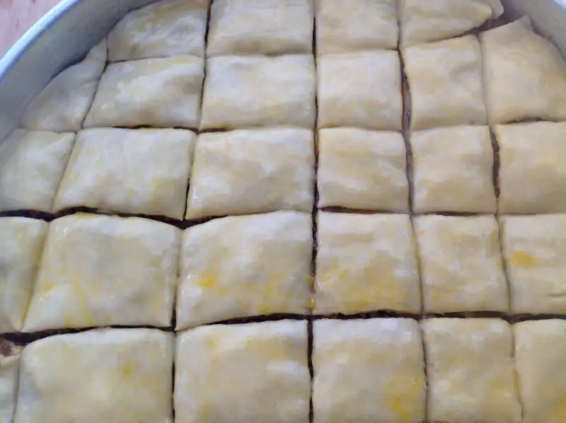 En son altılı gurubu açıp tepsimize serelim ve daha sonra böreğimizi kareler halinde keselim