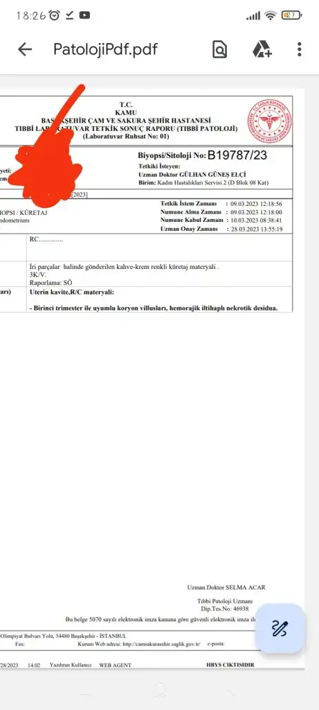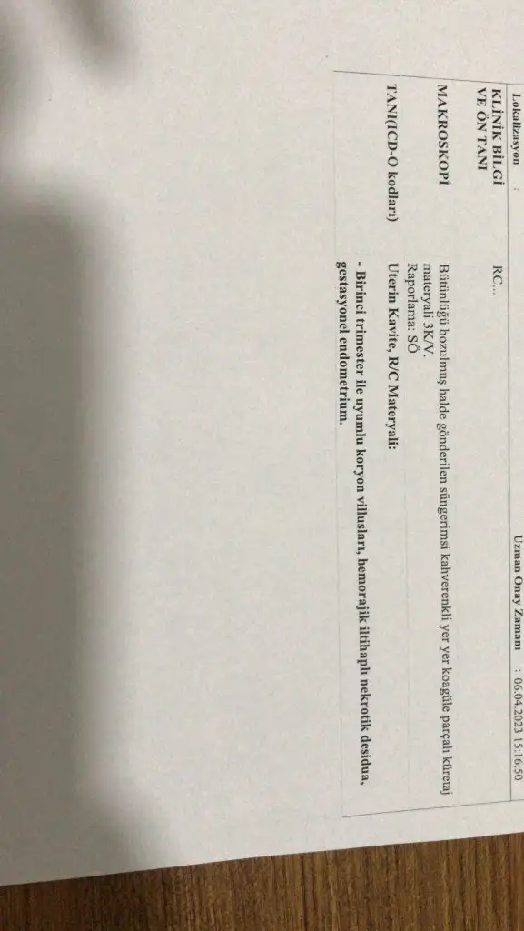 Ben 3 hafta önce kürtaj olmuştum bebeğimin 8 haftalıkken kalbi durduğu için ve patolojim sonucum geldi aranızda anlayan var mı acaba sonuç ne anlama geliyor.
