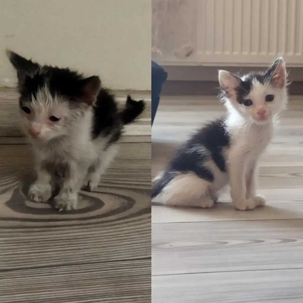 annesi tarafından terk edilmiş, gözleri iltihaplı, çamur içinde kalmış aç bir kediden; gözleri cin gibi bakan, tertemiz ve kabarık tüylü, karnı tok sırtı pek ve göbüşü sevilen minnoş bir kediye. :KK200: