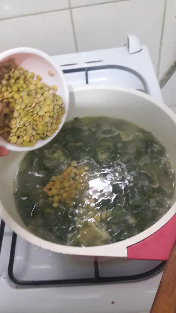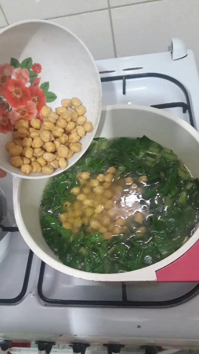 ardirdan sirayla once pazi, sora nohut pirinc ve yesil mercimegi ekliyip kaynamaya birakiyoruz..