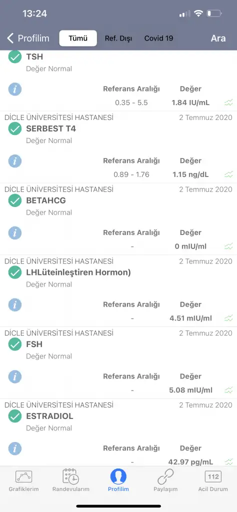 Prolaktin: 35 (bu dediğim gibi arada yükseliyor. Doktorlar bu kadar az yükselmiş değeri tınlamıyor bile)