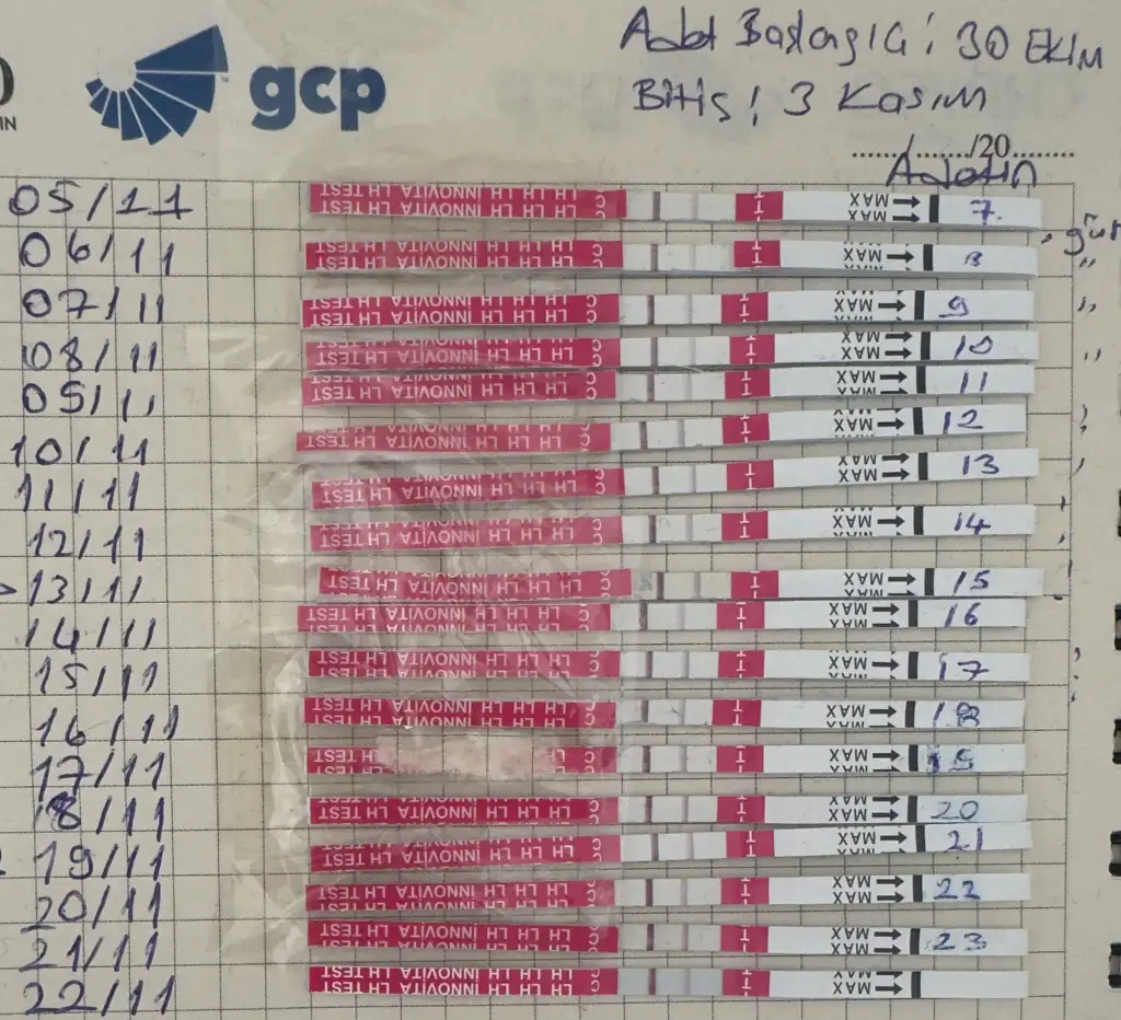 Genellikle akşam ve öğlenden sonra sıvı alımına dikkat ederek yaptım ama akşam yaptıklarım bi tık daha koyu çıktığını farkettim ve yaklaşık 1 haftadır da sağ kasık ağrım var batma şeklinde yumurtlama ağrısı olsa testlerde çıkacağını düşünüyorum 🥴