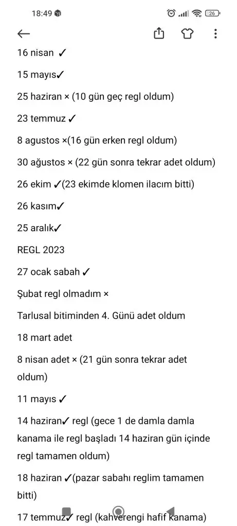 Pepapp diye bir uygulama var onu indirebilirsin takibini daha iyi yaparsın hem not eklemek istersen de ekleyebilirsinBak geçen seneden itibaren regl döngüm bu sekilde