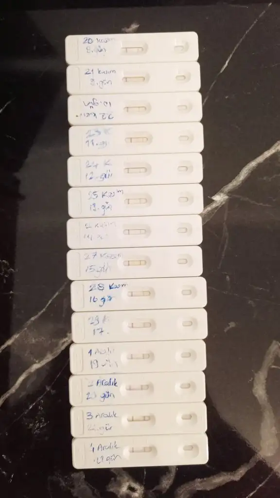 Demekki neymiş çokta pik kadar koyu olmadanda yumurta büyüyüp catliyormus testlerin hassasiyetine görede değişiyor o yüzden pike yakın koyu bile olsa değerlendirmek şartKızlar merhaba bende de pcos ve buna bağlı prolaktin yüksekliğim vardı yumurtlama göremiyordum. İlkinde dostinexle düşürdük hamile kaldım ama dış gebelikmiş ameliyatla sol tüpüm alındı geçtiğimiz mayıs ayında. 3 ay korundum sonra tekrar testler tahliller derken yine prolaktinim yükselmiş yumurtlama ve adet göremiyordum doğal bişeyler yapmak istedim ve takviyelere başladım. Çok sağlıklı ve temiz beslenmeye başladım. Her gün omega3, d3k2, çinko, ve inositol kullandım. Ama en önemlisi itimat hayıt kürü aldım ve ona başladım. 1.şişem bittiğinde tekrar prolaktinimi ölçtürdüm ve 42den 31e düştüğünü öğrendim. Bu arada kesintisiz bir şekilde ovulasyon takibimi yapıyordum, reglimin 40. Günü 3 aralıkta pik değil ama çizginin en koyu halini gördüm o gün tüm yumurtlama belirtileri vardı, sağ yumurtalığımda ağrı, bacağıma vuruyordu yürüyemiyordum, ve şeffaf uzayan akıntım oldu. Yumurtladığımı düşünerek o günü değerlendirdik ve dün akşam gebelik testlerim pozitif çıktı, şimdi beta takibi yapıcam inşallah sağlıklı bir şekilde artışı görürüm ve süreç sağlıkla ilerler. Dualarınıza talibim. Sizlere de duacıyımovulasyon ve gebelik testlerimi ekliyorum